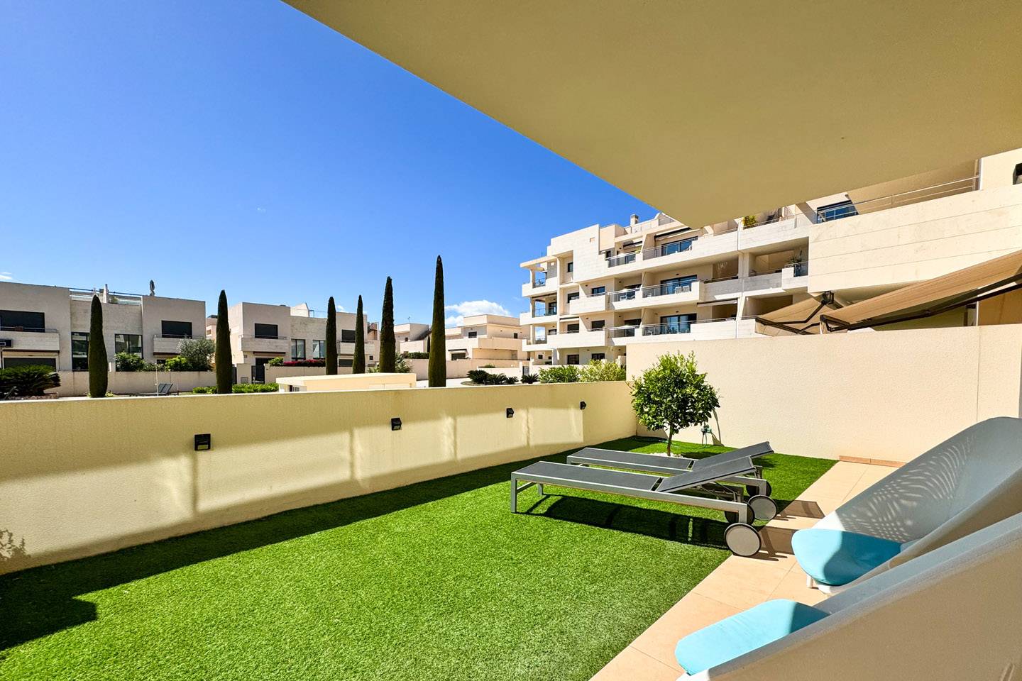 U geniet van een rustgevend uitzicht op de fraai aangelegde gemeenschappelijke zones. Hier vindt u meerdere zwembaden, een ligweide, groenvoorzieningen en een klein kinderspeeltuintje, ideaal voor gezinnen of ontspanning met vrienden.